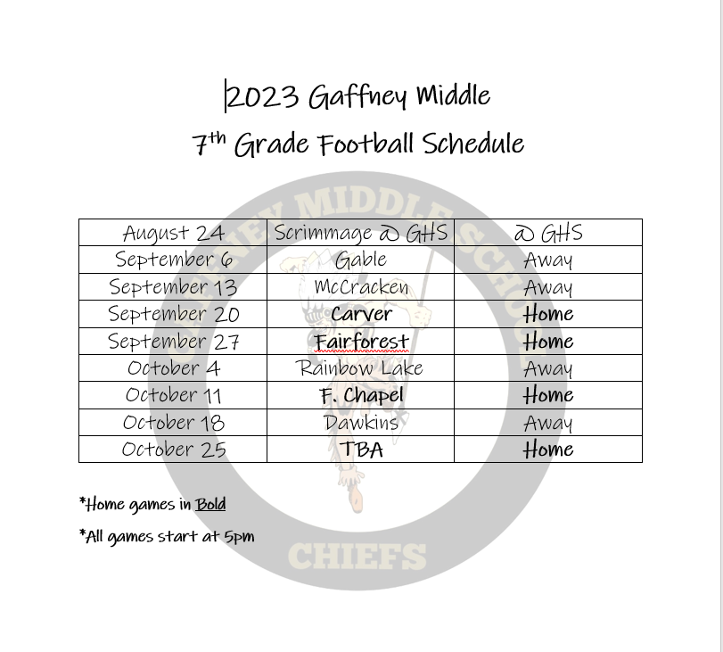 Schedule Gaffney Indians (Gaffney, SC) Varsity Football 23 24